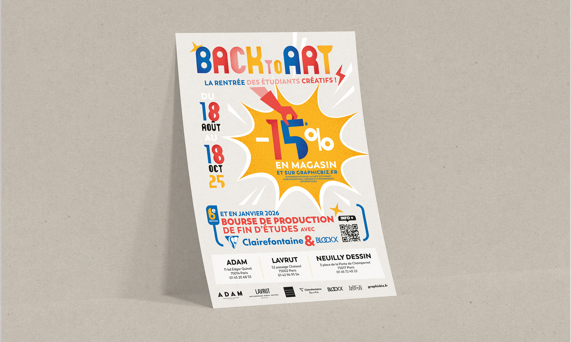 Création d'une identité graphique autour de l'évènement de la Rentrée des Arts 2025 dans les magasins Beaux-Arts Lavrut, Adam et Neuilly Dessin.